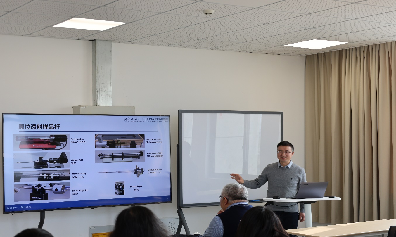 宋淼教授的报告题为“原位透射电镜在材料科学研究中的几个应用案例”,向师生展示了原位透射电子显微技术在材料科学研究中的强大威力。并通过生动的案例,如贵金属五重孪晶的形成及演化机理,铝合金中缺陷的形成和修复机制,以及钛合金相变增韧及界面结构演化研究等,展示了原位透射电子显微技术如何实时捕捉材料在极端条件下的微观结构演化过程。该项研究不仅为理解材料性能的微观机制提供了新的视角,也为材料的设计和优化提供了实验依据。