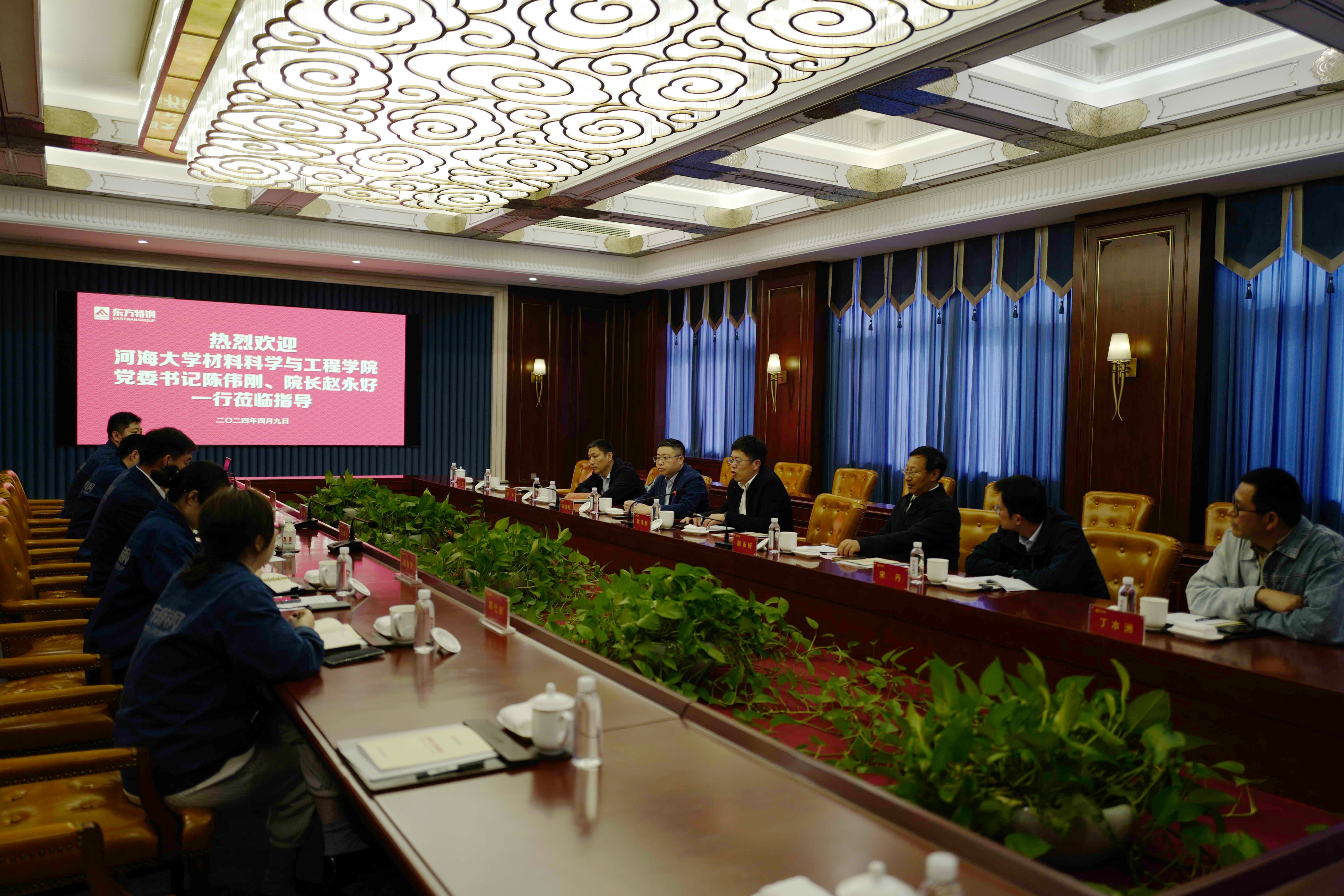 为落实教育部“访企拓岗促就业”专项行动的要求,促进产教融合,加强校企合作,4月9日,北京赛车PK10 院长赵永好、党委书记陈伟刚等一行赴东方特钢有限公司开展“访企拓岗促就业”调研活动。北京赛车PK10 副院长、常州校区管委会副主任崔锦铭,北京赛车PK10 副院长宋丹,图书馆信息咨询部副主任、副研究馆员丁本洲,北京赛车PK10 教师傅强、辅导员蒋旦悦参加调研。东方润安集团公司副总裁、东方特钢总经理张晓军,东方特钢副总经理、技术中心主任周志伟,综合办主任陆永梅、人事处处长董玉祥、技术中心副主任李海涛等接待北京赛车PK10 调研团一行。