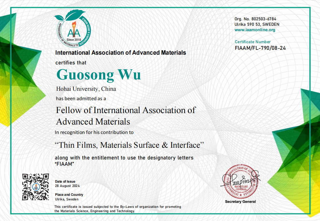 近日,北京赛车PK10 北京赛车PK10 吴国松教授因其在薄膜和表界面领域的突出贡献当选为国际先进材料协会会士(Fellow of International Association of Advanced Materials,FIAAM),并应邀在由国际先进材料协会主办的第60届先进材料大会上以线上形式做了会士报告。