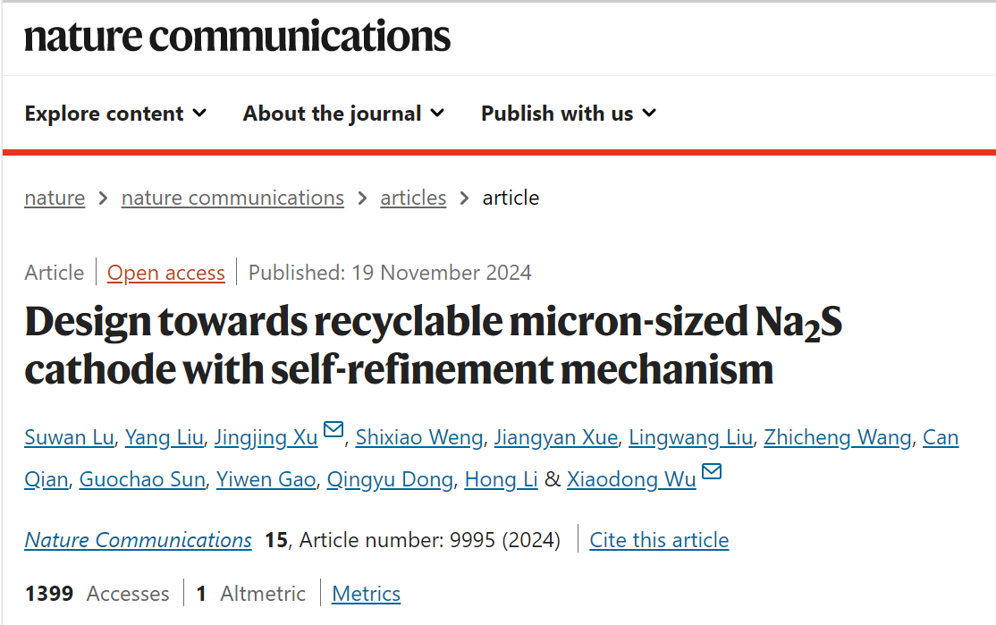 许晶晶研究员以共同通讯作者身份在国际知名期刊《Nature Communications》上发表了题为“Design towards recyclable micron-sized Na2S cathode with self-refinement mechanism”的研究性论文。中国科北京赛车PK10