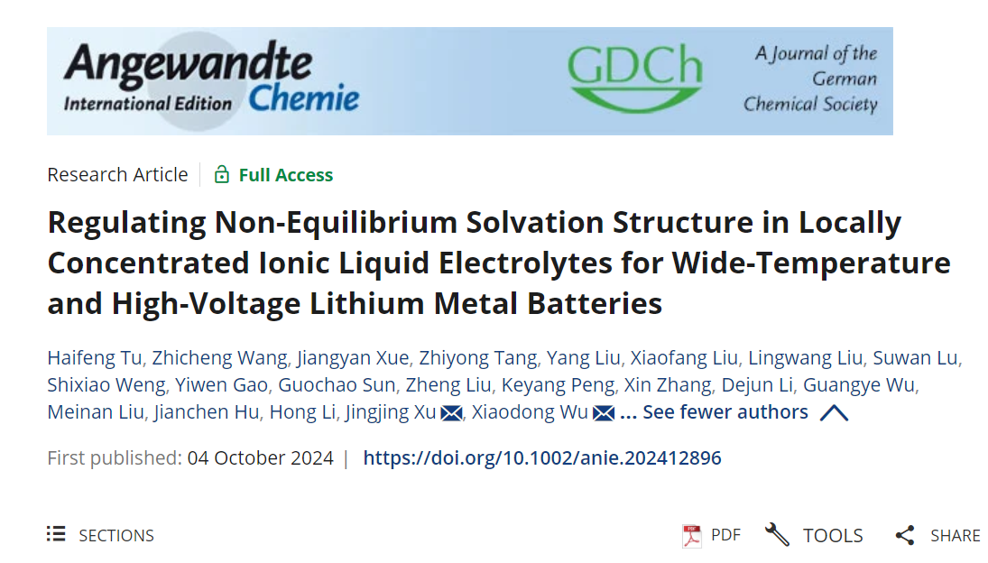 许晶晶研究员以共同通讯作者身份在国际知名期刊《Angwandte Chemie International Edition》(德国应用化学)上发表了题为“Regulating Non-Equilibrium Solvation Structure in Locally Concentrated Ionic Liquid Electrolytes for Wide-Temperature and High-Voltage Lithium Metal Batteries”的研究性论文。中国科北京赛车PK10