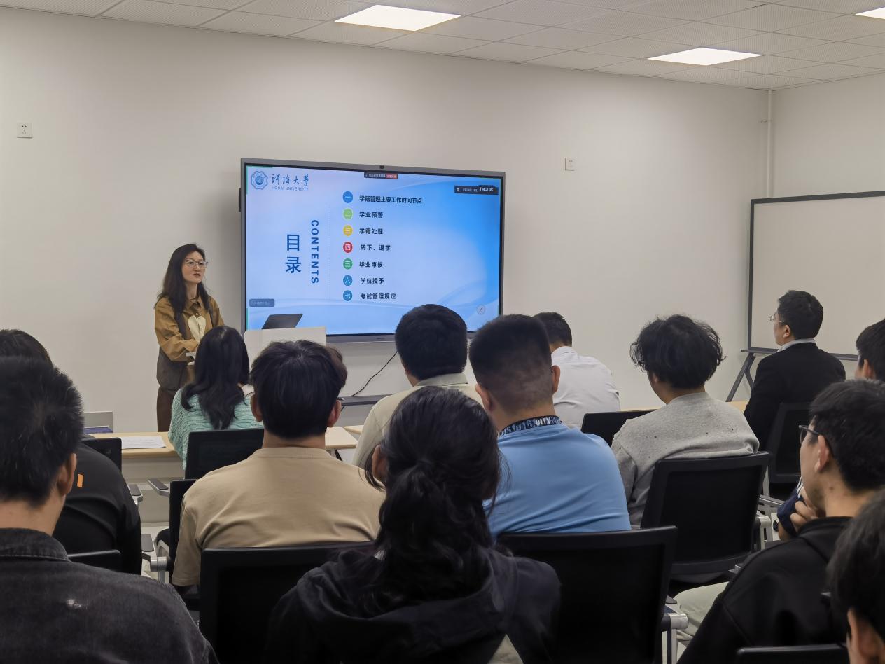 会上,本科生四个年级辅导员分别就责任年级学业情况进行交流,并对于学业规划提供针对性建议;教学秘书就当前学籍管理时间点进行强调,对毕业、学分、课程要求进行了详细的说明和指导。