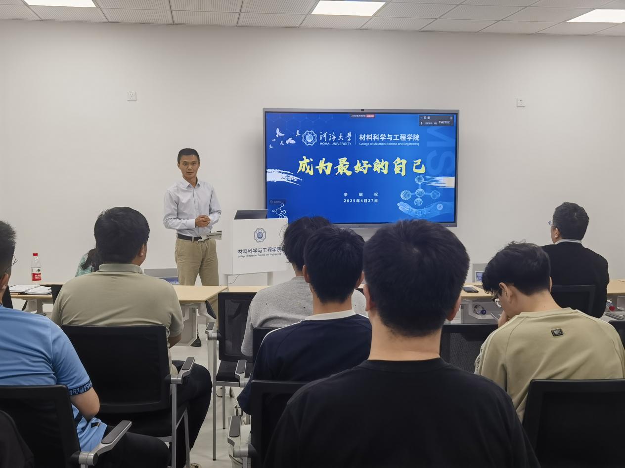 宋丹结合当前教学实际,分析了学生在课程学习、科研实践中的共性问题,并提出“强化师生联动、优化课程设置、拓展学业支持资源”具体举措;辛绍权以《成为更好的自己》和同学们进行了分享,引导同学们要树立正确的人生观、世界观和价值观,指导同学们通过认识自己、修正自己、提升自己而成为更好的自己,做一名勇于拼搏、敢于奋斗、不负青春的时代好青年。