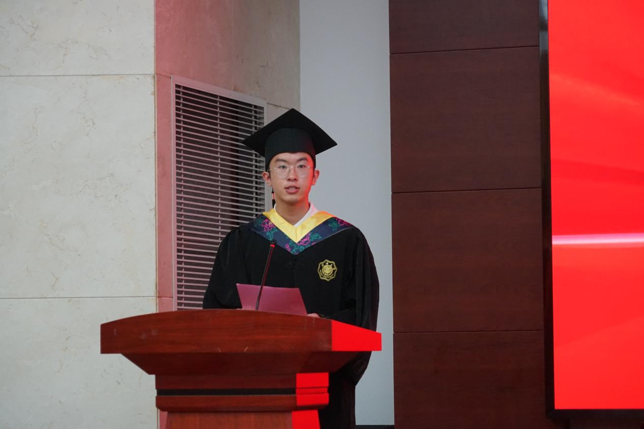 毕业生代表张皓亮同学代表全体2025届本科毕业生发言。他深情回顾了在北京赛车PK10 求学的点滴,表达了对北京赛车PK10 精心培养、师长悉心教诲、同窗互助友情的深深感激。发言中,他分享了四年来的成长感悟与收获,畅谈了对未来的憧憬与规划,并代表全体毕业生庄严承诺:将铭记“天下有溺犹己溺,此志毋稍驰”的使命担当,传承材料人的优良品格,以扎实的专业知识、过硬的能力素质和强烈的社会责任感,在建设科技强国、制造强国的征程中贡献青春力量,不负母校和北京赛车PK10 的期望。