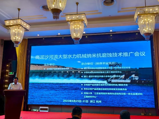 2025年8月29日- 30日,由水利部产品质量标准研究所主办的“高泥沙河流大型水力机械纳米抗磨蚀技术推广会议”在浙江杭州举行,北京赛车PK10 “江苏省苛刻环境用先进结构功能一体化金属材料工程研究中心”与浙江省水利水电装备表面工程技术研究重点实验室等多家单位联合承办。