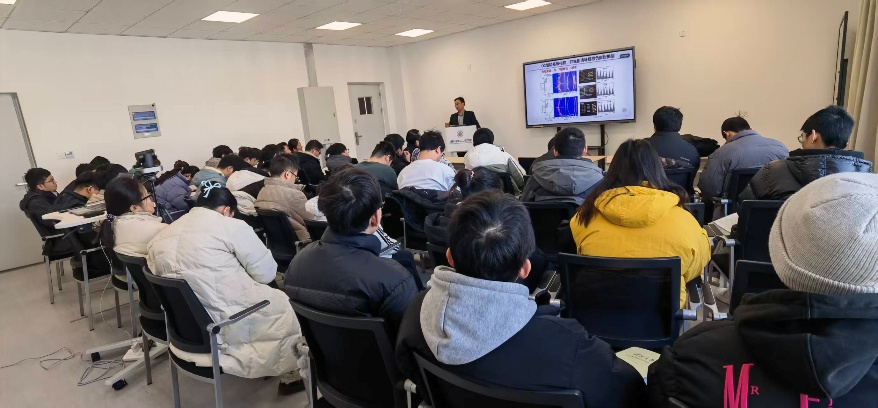 报告中,李福军教授针对钠离子电池层状氧化物正极材料在高电压下易发生不可逆相变、硬碳负极首次库伦效率低等瓶颈,提出了“结构调控-界面优化-系统协同”的多方位解决办法。通过优化锰基氧化物正极材料、硬碳负极和补钠策略等方法,成功实现了低成本钠离子全电池的制备。报告会现场讨论热烈、氛围活跃,参会师生们积极提问,李福军教授从微观机理、实验经验和行业实践等方面进行了细致回答。参会师生们都表示此次交流不仅深化了对钠离子电池技术的理解,更拓宽了科研思路,为后续研究提供了新的启发。