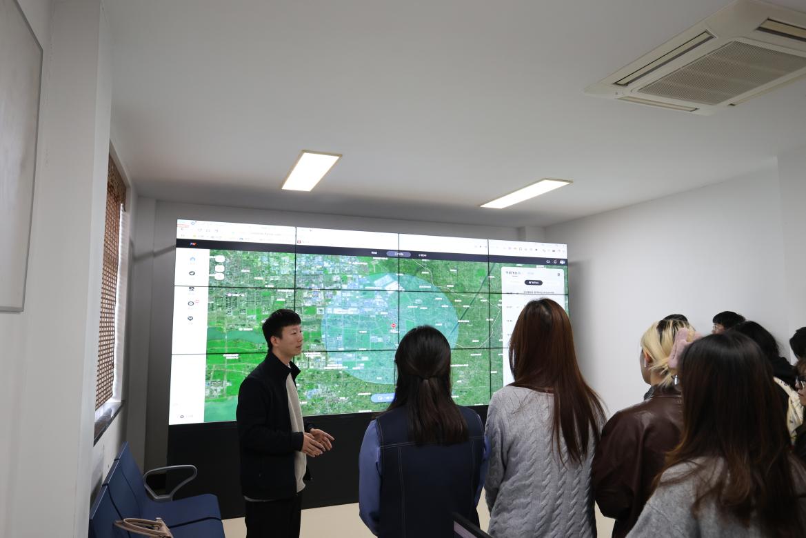 活动的第一站,青年学生们来到薛埠社区,实地调研学习了智能社区青年干事项目的优秀案例。社区青年干事、鸿旷(江苏)科技发展有限公司负责人王震对“低空智慧”赋能基层治理现代化青年科创项目进行了现场演示,并向师生们详细展示了如何利用配备高清摄像头与智能识别系统的行业无人机,高效参与社区环境卫生监测、违章建筑巡查、河道巡检等基层治理工作。现场进行的低空巡检演示,生动呈现了科技如何为传统工作模式赋能,显著提升基层治理的精度与效率。